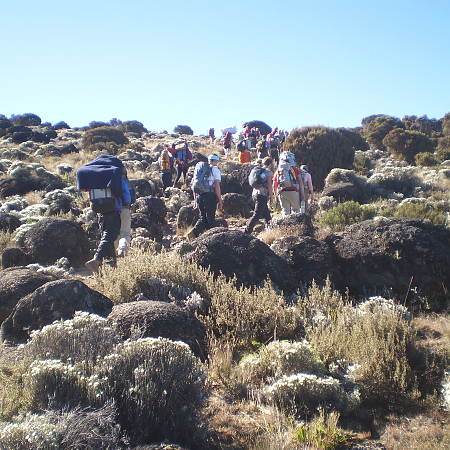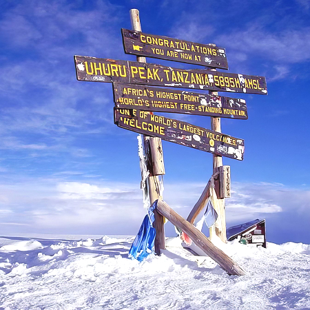 The climb up Mount Kilimanjaro is a very rewarding experience, and is a must for fit adventure-seekers. Experienced guides, accompanied by porters, lead visitors to the top of the mountain via various routes, passing through a variety of vegetation - forests, alpine vegetation, semi-desert, moorland - before reaching the icy top. Visitors can arrange such tours from Moshi or Arusha. The climbs can take anywhere from 5-8 days. While the mountain can be climbed all the year round, the most popular time is around December-January. April, May and November should be avoided, because rainfall is heavy at that time.