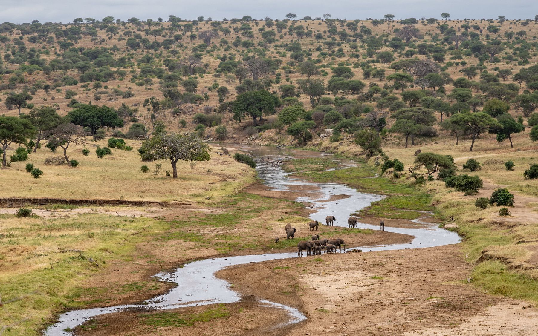 1030 - Morning game viewing in Tarangire National Park. Tarangire has a wonderful concentration of wildlife. During certain months, many of the migratory species come back to the waters of Tarangire River, from which the Park derives its name. Large herds of wildebeest, zebras, elephants, eland and oryx gather until the beginning of the rains when they migrate to other areas for grazing.